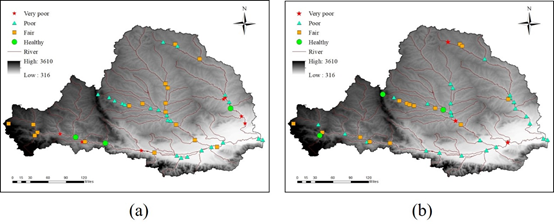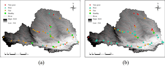 渭河流域B-IBI评价结果:(a)夏季;(b)秋季 |
