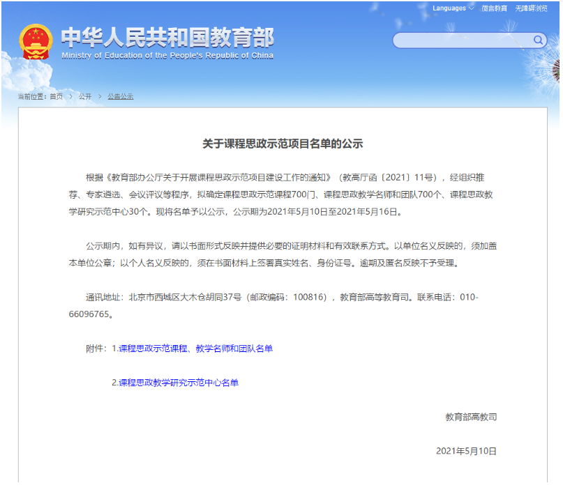 近日,教育部公示了国家级课程思政示范项目的认定结果(公式已结束),王宁练教授教学团队申报的《自然地理学方法》获得国家级课程思政示范课程认定,该教学团队获得课程思政教学名师和团队(普通本科教育类)认定。