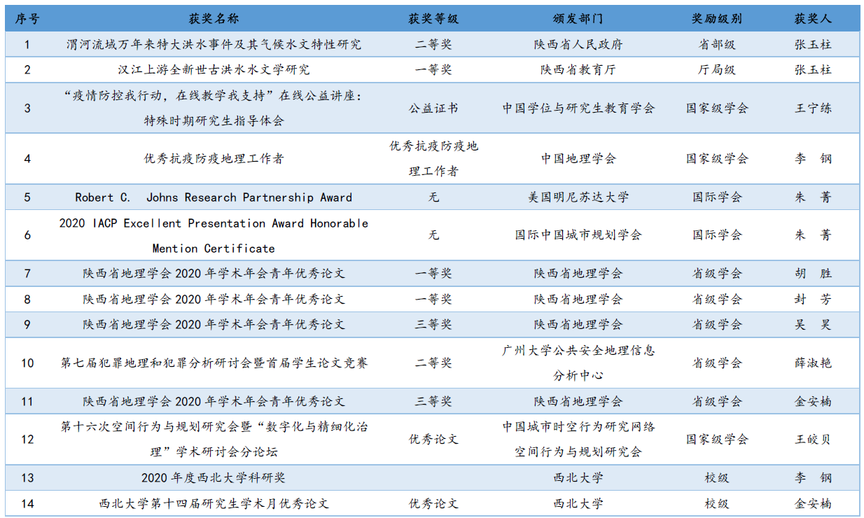 2020年科研获奖情况