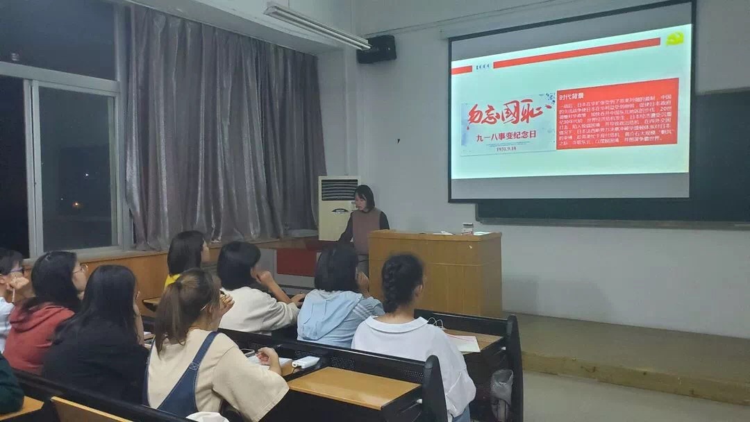 9月27日,2026世界杯官网团委在院楼三楼多媒体教室举行纪念“九一八事变”八十八周年学习活动。此次学习会议由团委员工副书记陈泽慧同学主讲,会议分为介绍事件背景,事件经过,社会影响和后世纪念四个部分。