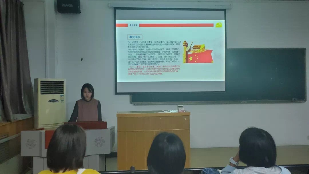 接着,陈泽慧同学细致地讲解了“九一八事变”对中国与世界政治,外交,军事等各方面的深刻影响,并介绍了现在对“九一八事变”丰富多样的纪念活动。经过认真的学习,同学们对“九一八事变”的历史史实有了更清晰的认识,对“落后就要挨打”的真理有了更深刻的理解,对今天美好生活来之不易有了更生动的感受。
