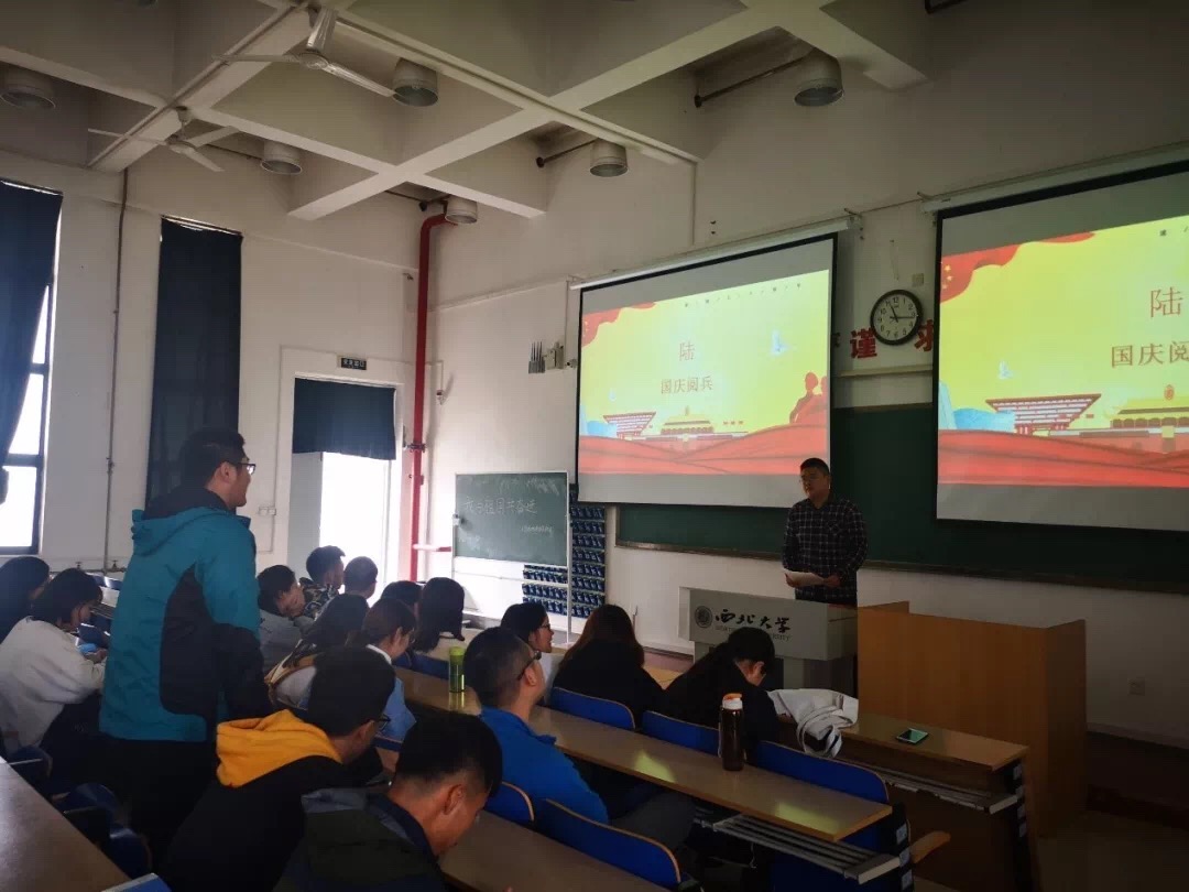 最后,团支书又为同学们回顾了许多有关阅兵的细节,并且展示了很多图片,并对建国以来各个方面的巨大成就进行了总结。