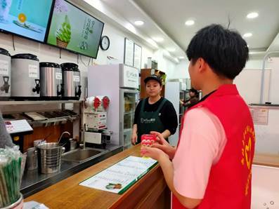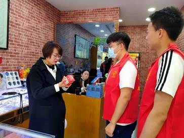 宣传过程中,志愿者们首先讲解了我国目前严峻的生态危机问题,引出绿色生活、低碳环保的重要性。随后发放环保宣传资料,引导商户了解更多的环保知识,鼓励商户从身边的小事开始践行环保主义。最后志愿者们记录和解答了商户们提出的环保问题,并向其赠送环保小礼品,再次呼吁商户们加入环保阵列中。