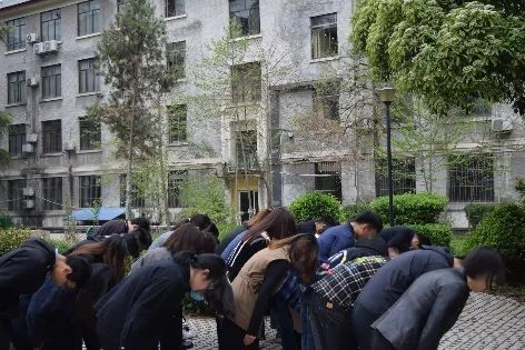 献花结束后,全场肃立,低头向郭峰烈士默哀。默哀毕,全体在场人员向着郭峰烈士像三鞠躬。师生们回顾和学习烈士的英雄事迹,怀念和敬佩在胸中激荡。