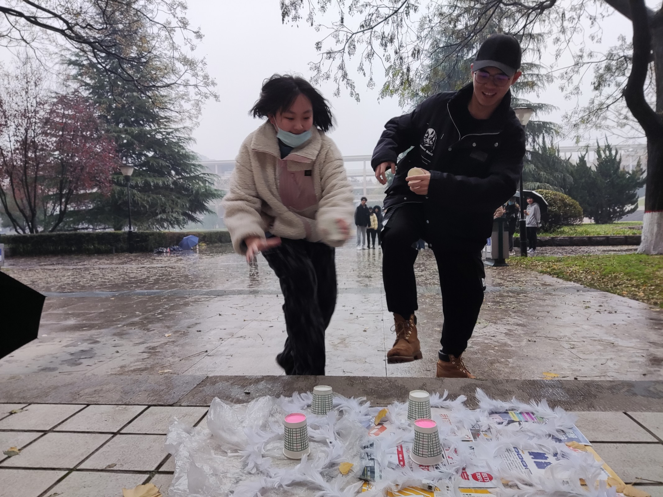 比赛当日下起了小雨,出于对同学们安全的考虑,原先设定的各项目打卡地点大都改为了室内地点。活动开始,工作人员宣读活动规则及注意事项,并向各组派发打卡地图。随后,比赛正式开始。在综合考虑了时间成本与路程长短后,各个小组奔向了不同的打卡点。这次活动在城环院体育部的策划下,准备了7个考验团队合作能力的项目,每个打卡点都有两到三名工作人员负责维持项目的正常进行。