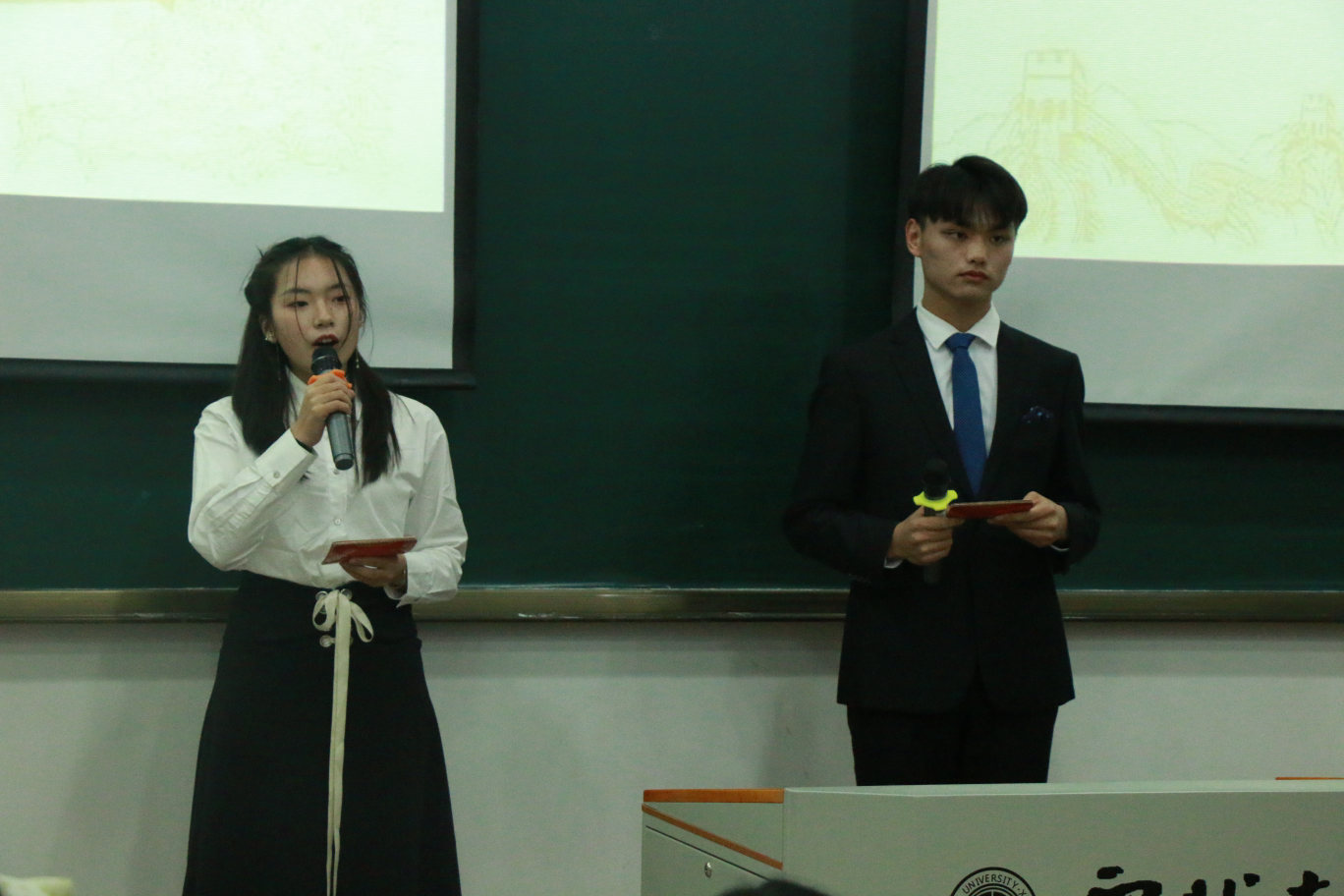 首先,两位主持人欢迎了评委和同学们的到来,并介绍了本次比赛的评分标准。随后,17位参赛选手依次上场演讲,抒发了浓厚的爱国之情,更展现出了胸怀梦想,矢志奋斗,争做新时代追梦人的青春风貌。