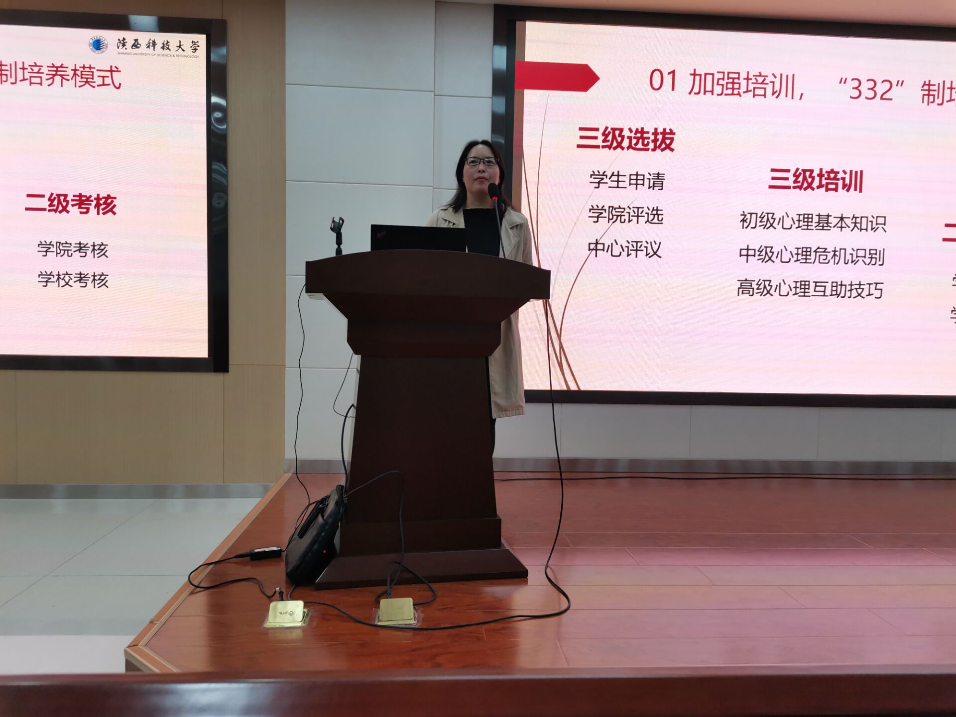 2019年10月24日下午7:00在物理公司10楼伯宇报告厅举办了主题为“朋辈心理援助技术培训——班级心理委员、宿舍心理联络员”的心理讲座。来自陕西科技大学心理中心的董雪老师用幽默风趣的语言和详尽的事例,为公司18、19级心理委员和宿舍心理联络员带来一次生动的讲座。