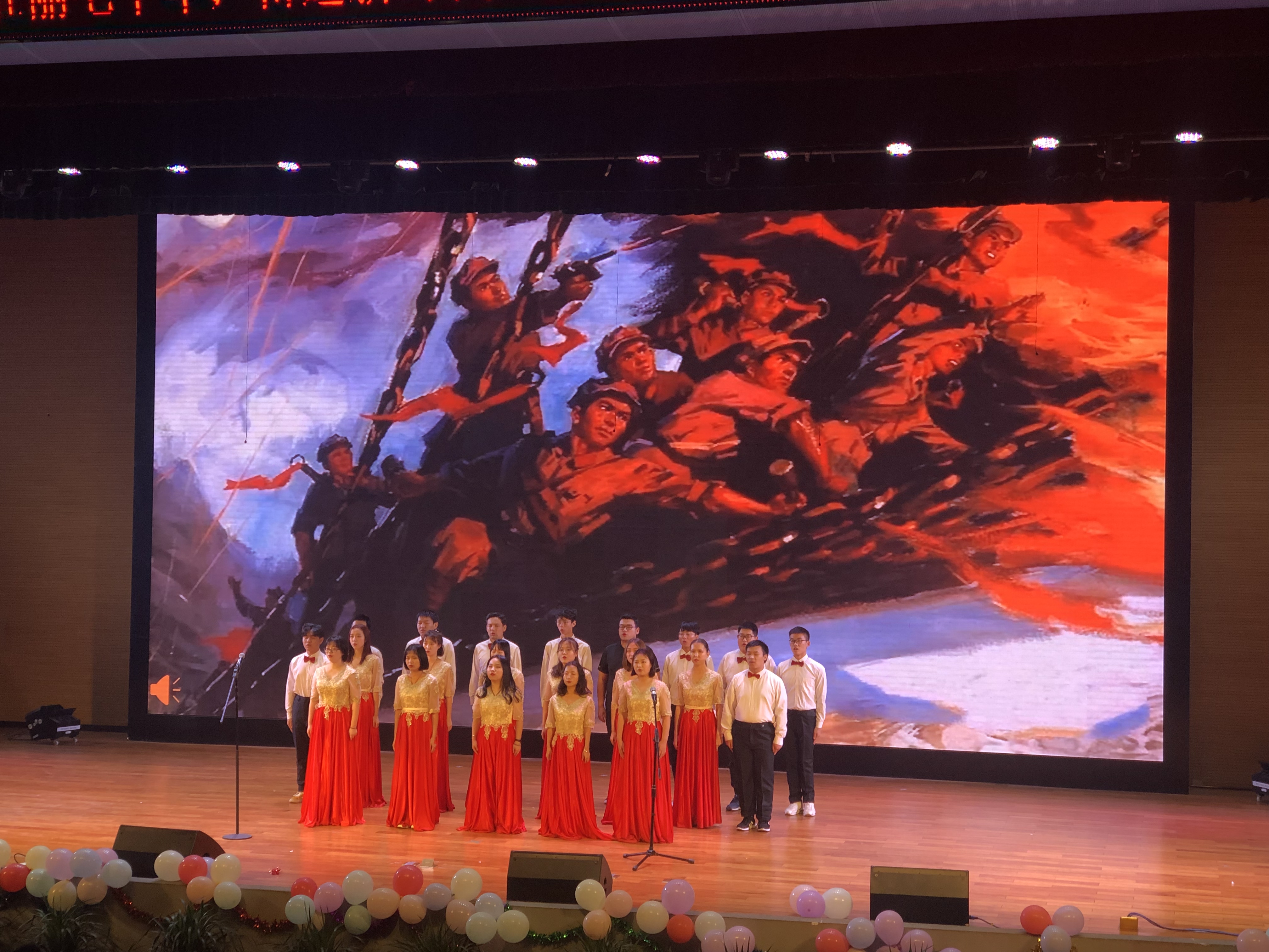舞蹈《礼仪之邦》 着我华夏之服,兴我礼仪之邦。举手投足,吐纳着千年壮阔! 合唱《龙的传人》、《红旗飘飘》、《我们走在大路上》 神州大地,泱泱华夏,红旗飘飘定乾坤,大路宽广扬斗志!