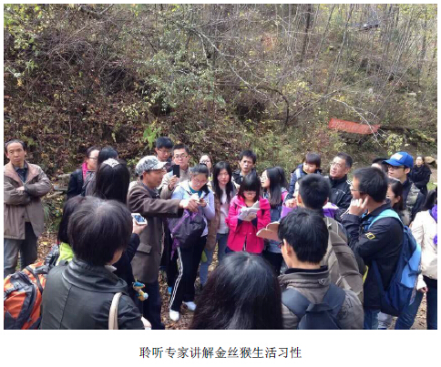 上午,实习队一行30人,沿西汉高速深入秦岭朝阳沟野生金丝猴观察站,现场观察野生金丝猴栖息地环境与进食行为特征。观察站的专家就秦岭野生金丝猴观察站点和网络的建设情况,金丝猴种群结构特征、生活习性和行为规律等问题做了详细解答。Richard Hutchinson教授还带领实习队对朝阳沟森林生态系统做了调查分析,李钢老师就秦岭山地的地理界线意义,南北坡的土壤与植被垂直带谱分异,秦岭山地树轮气候学研究方面做了详细介绍。