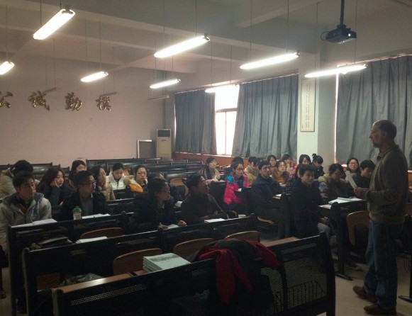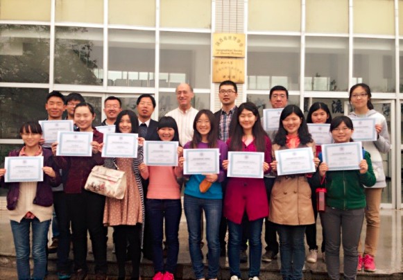 2013年秋,为提高公司师生的国际化水平,在公司党政领导的积极争取和大力支持下,公司邀请来自美国的Richard Hutchinson教授开设《Environmental Science》全英文专业课,并委派李钢老师担任班主任,负责日常管理。课程计划36学时,采用美国原版教材,包括理论学习与野外实践两部分,真正实现了“将美国课堂搬到城环院“, 课程的开办受到了研究生院与教务处的关注与肯定。