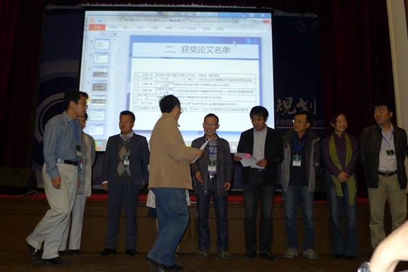 领取教师优秀论文获奖证书(右五为公司教师李建伟)