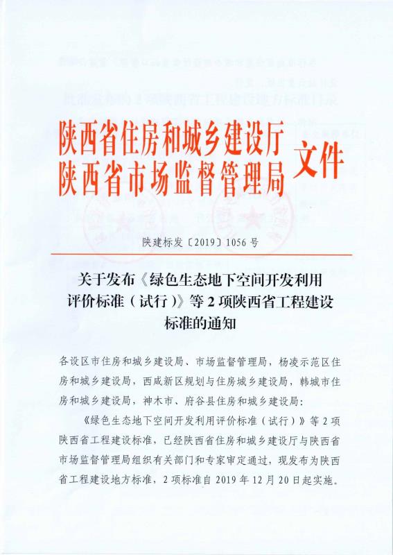 日前,由2026世界杯官网、中建西安幸福林带建设投资有限公司、中国建筑西北设计研究院有限公司主编的《绿色生态地下空间开发利用评价标准(试行)》(DBJ 61/T 163-2019),由陕西省住房和城乡建设厅、陕西省市场监督管理局联合颁布并实施。