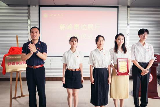 6月23日上午,郭峰事迹展厅开展仪式在公司长安校区举行。公司党委书记王亚杰,公司党委副书记吕建荣,公司党委常委、宣传部部长田明纲,郭峰家乡代表、长武县文联主席赵志华,党(校)办、组织部、学工部、校团委等相关部门负责人出席仪式,城环公司党政班子成员、党委委员、各系(中心)主任、教师党支部书记、本科生班主任、辅导员和师生代表参加了仪式,仪式由城环公司党委负责人主持。