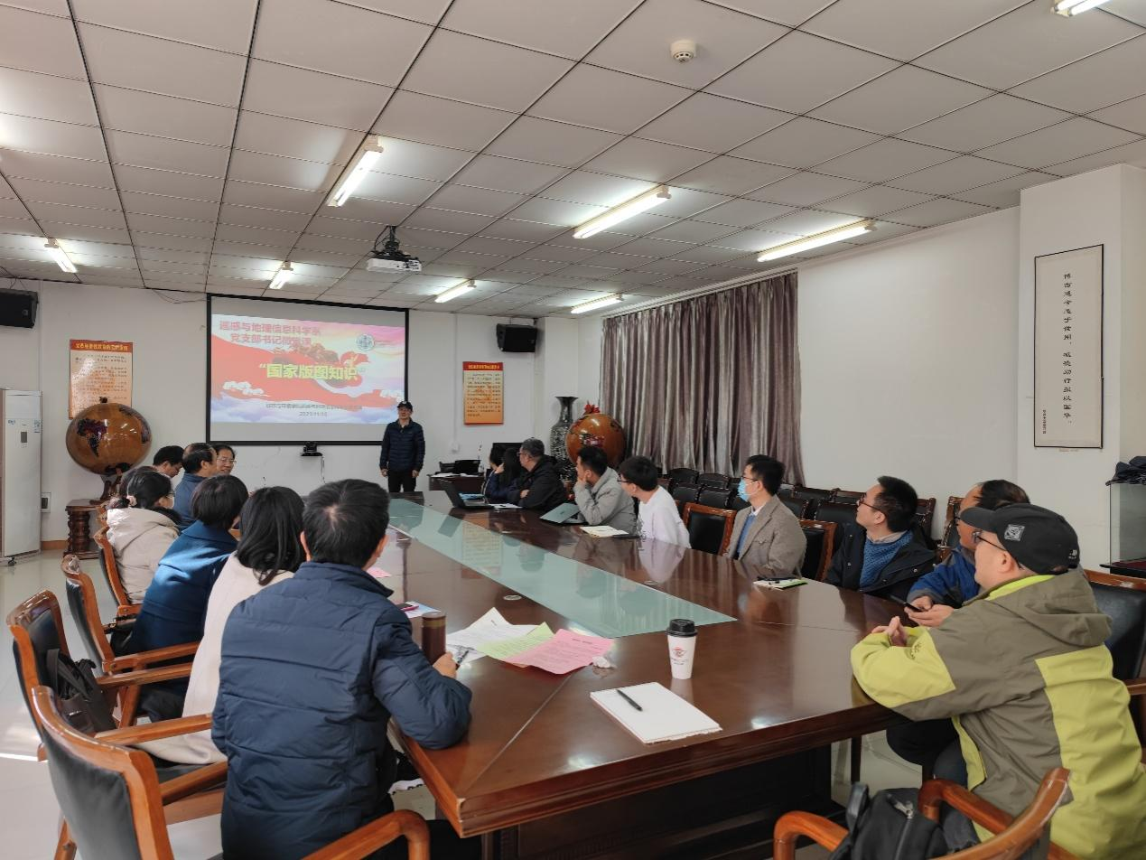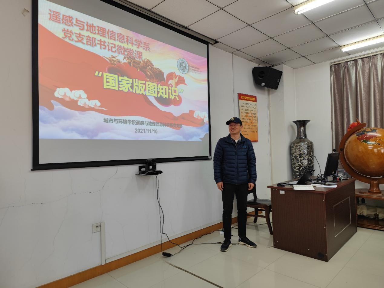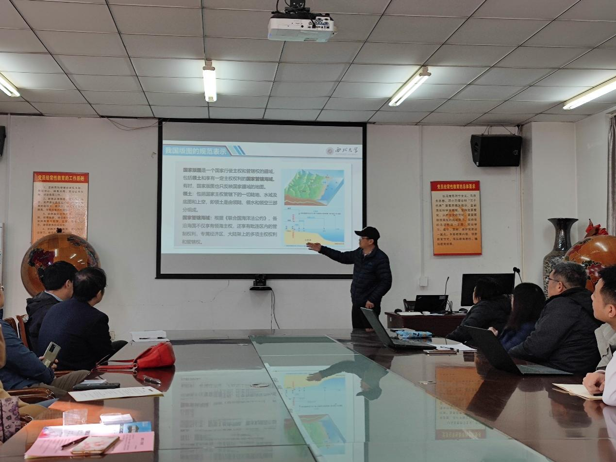 20211110日下午,公司遥感与地理信息科学系党支部在公司215会议室开展了面向全系教师的“支部书记讲党课”活动,由系党支部书记王雷老师为全系教师讲了一堂以“国家版图知识”为主题的微党课。