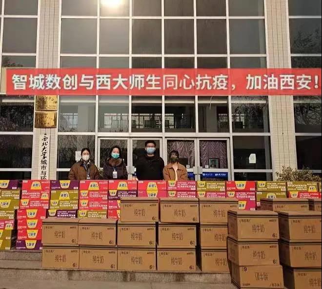 2004级地理信息科学专业员工张京(智城数创(西安)科技有限公司)捐赠火腿肠(100根/箱)24箱,牛奶(12盒装)200箱,袋装方便面(24包/箱)200箱