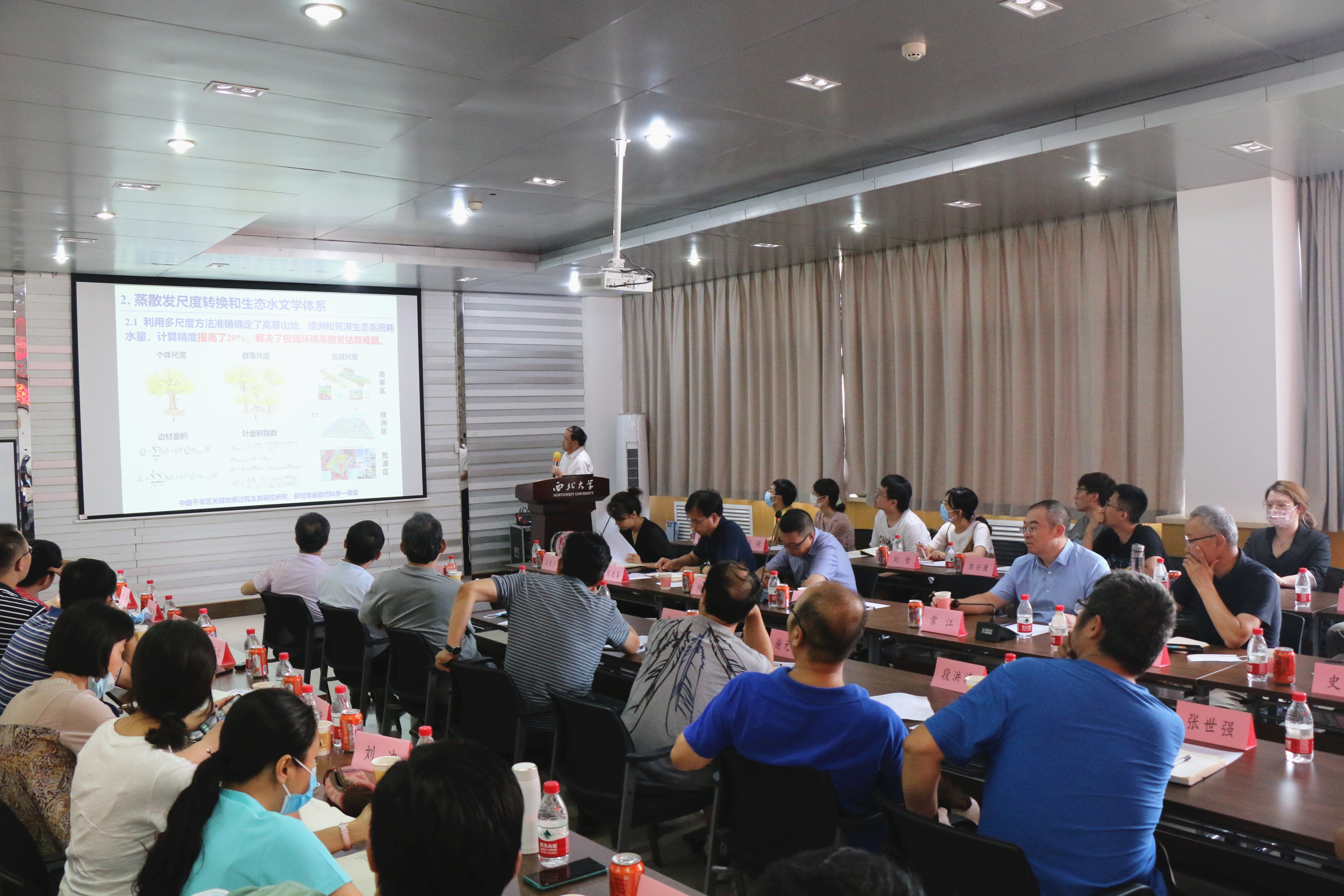 冯起院士为公司师生作了题为“西北极端环境生态系统修复理论与技术”的学术报告。他从西北区域重要性、西部生态环境问题、关键问题和理论基础薄弱的角度引入,在深刻阐述了西北内陆河流生态水文研究的重大背景和科技需求的基础上,重点讲述了冯起院士在内陆河流域寒旱区生态恢复的水调控理论与技术研究成果。针对内陆河流域复杂生态系统退化水调控机理认知有限,生态水文理论尚不能有效指导生态恢复实践这一科学难题,阐述了在揭示内陆河流域生态系统与水文过程互作机制,解决了极端环境蒸散发尺度转换方法及高精度难题,建立以高寒山地水文、绿洲生态水文、荒漠生态水文为核心的内陆河生态水文学理论体系,形成了寒旱区生态系统多维临界调控理论;同时,针对不同类型退化生态系统恢复和修复存在的技术瓶颈问题,通过介绍高寒山区水源涵养植被保育技术集成、绿洲节水灌溉与节水型植被防护体系、内陆河生态安全与恢复的水调控模式等,阐释了在创建内陆河流域不同类型生态系统恢复和治理的调控技术,支撑高寒水源地、平原绿洲、荒漠过渡带三道生态防线的建设,保障丝绸之路经济带生态屏障与生态安全等方面的技术体系与实践成果;并且,针对极端环境下生态恢复技术适应性模式体系亟待研发的迫切需求。结合从荒漠河岸林胡杨生态重建技术、“五带一体”风沙防护技术、草地修复和水源地保护技术、生物多样性和湿地保护技术、西北内陆区水资源安全保障技术展开,讲述了构建的内陆河极端环境生态恢复调控技术与模式在内蒙古、甘肃、新疆、青海、山东沿海以及蒙古国等地推广应用起到了显著成效的实际情况。此外,冯起院士简要介绍了中科院内陆河生态水文重点实验室等相关研究平台和团队建设情况。