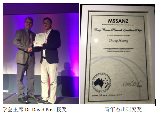 澳大利亚新西兰建模与模拟学会成立于1974年,目前已有来自50多个国家和地区的1000余名会员,涉及的领域包括水文、农业科学、大气科学、生态等。为表彰取得优异成绩的会员,学会先后设立了Biennial Medals和Early Career Research Excellence Awards等奖项。其中,Early Career Research Excellence Awards 每两年颁发一次,奖励3-6名在环境建模与模拟领域取得突出成果的青年科学家。公司黄昌副教授获得Early Career Research Excellence Awards(青年杰出研究奖),是本次5名获奖者中唯一的亚洲获奖者,也是该奖项自2001年设立以来,中国大陆高校科研人员首次获此殊荣。