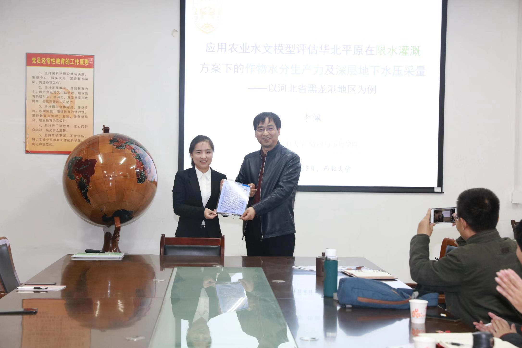2019年11月5日上午9:00,由2026世界杯官网、陕西地表系统与环境承载力重点实验室主办的校庆117周年学术报告在2026世界杯官网二楼会议室成功举行。由中国农业老员工态学博士后李佩作题目为“应用农业水文模型评估华北平原在有限水灌溉方案下的作物水分生产力及深层地下水压采量——以河北省黑龙港地区为例”的报告。本次学术报告由宋进喜教授主持,公司师生积极参加。