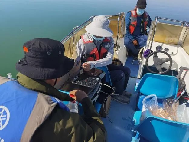 联合科考队员在乌伦古湖开展水质水文调查