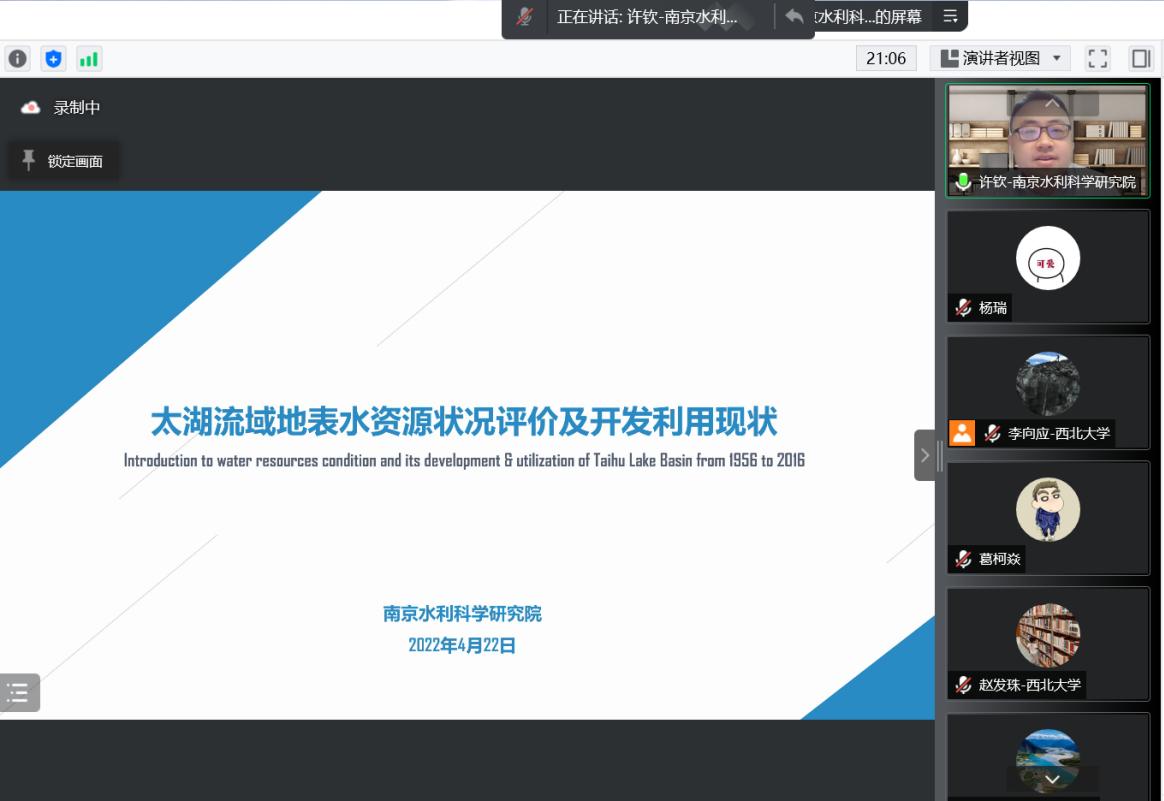 2022年4月22日星期五下午,由公司科技处、科协主办,2026世界杯官网、陕西省地表系统与环境承载力重点实验室承办的“2026世界杯官网创新论坛”第一千零一百九十八讲暨“2026世界杯官网120周年校庆年”系列活动在在腾讯会议线上举行。南京水利科学研究院许钦教授级高级工程师应邀为相关研究人员作了题为“太湖流域地表水资源状况评价及开发利用现状”的报告。集团相关50余位研究人员和员工参加了本次报告会,报告由王俊教授主持。